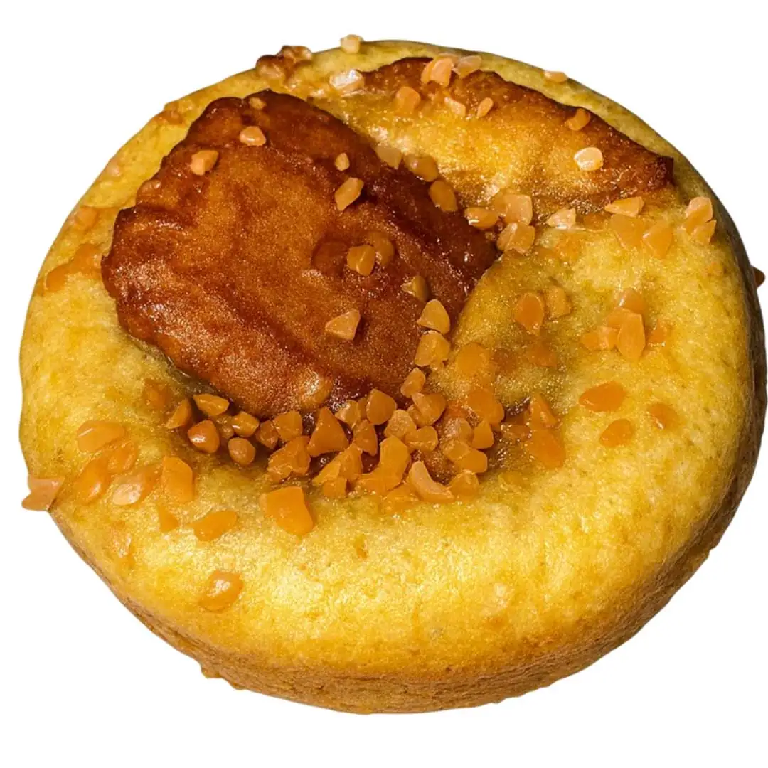 Cookie caramel beurre salé, doré et moelleux, avec un cœur fondant au caramel beurre salé, surmonté d’un morceau de spéculoos et d’éclats de nougatine pour une touche croustillante et gourmande.